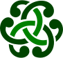 This features a green and white Celtic knot design. This intricate pattern is made up of interlocking circles, with each circle having a unique shape. The design has a central part that is predominantly green in color, while the edges are adorned with comma-like symbols. The overall effect is an eye-catching and visually appealing piece of artwork.