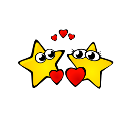 This features two yellow stars with hearts on them, positioned close to each other. They are both adorned with hearts, one on the left and another on the right side of the stars. These cute little stars seem to be expressing their love for each other in a playful manner. The overall scene is reminiscent of a night sky, adding a sense of warmth and coziness to the image.