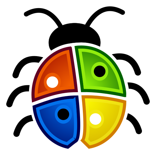 This features a colorful illustration of a ladybug, which is a type of insect known for its distinctive red and yellow colors. This particular ladybug has been creatively designed to resemble the Windows logo, with four sections that mimic the iconic Windows shield. Each section of the ladybug's body is colored in different shades of blue, green, orange, and yellow, creating a vibrant and eye-catching design. The overall appearance of the ladybug is both visually appealing and cleverly inspired by the popular Windows logo.