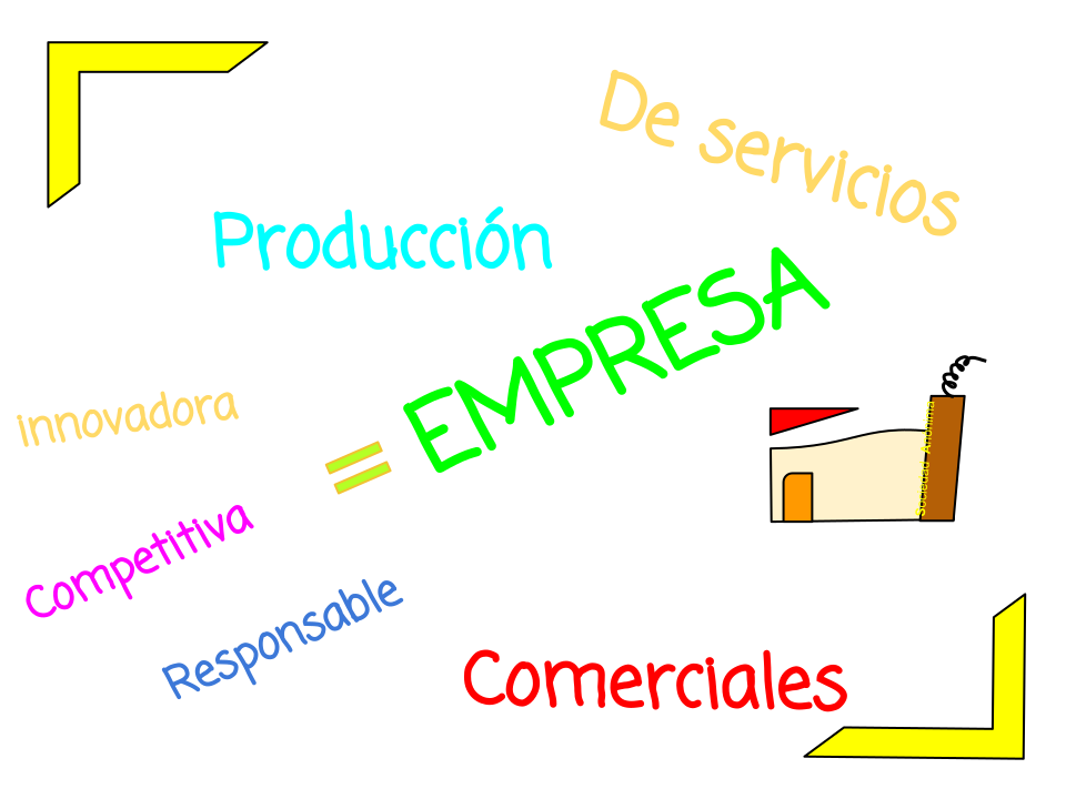 This features a white background with various words written in different colors. These words are related to the concept of business and commerce, such as "empresa," which is written in green. Other words include "produccion," "innovacion," "competitividad," "responsabilidad," "comerciales," and "comerciales." The words are arranged in a way that they form a circle around the center of the image, where a small picture of a building is placed. This arrangement creates an interesting visual effect, making the text stand out against the white background.