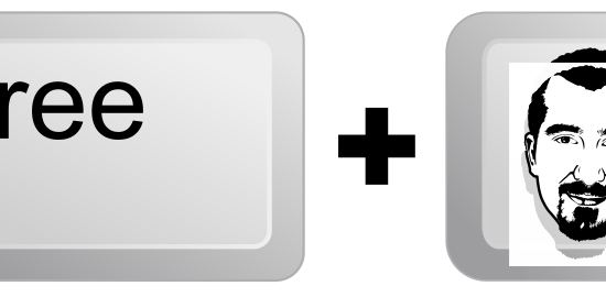 This features a keyboard with two keys, one of which has the word "free" written on it. Above this key is a picture of a man's face, giving the impression that the word "free" refers to something related to the man in the photo. The other key appears to be unrelated to the man's face and could potentially serve as another function on the keyboard. Overall, the image presents an interesting combination of text and visual elements.