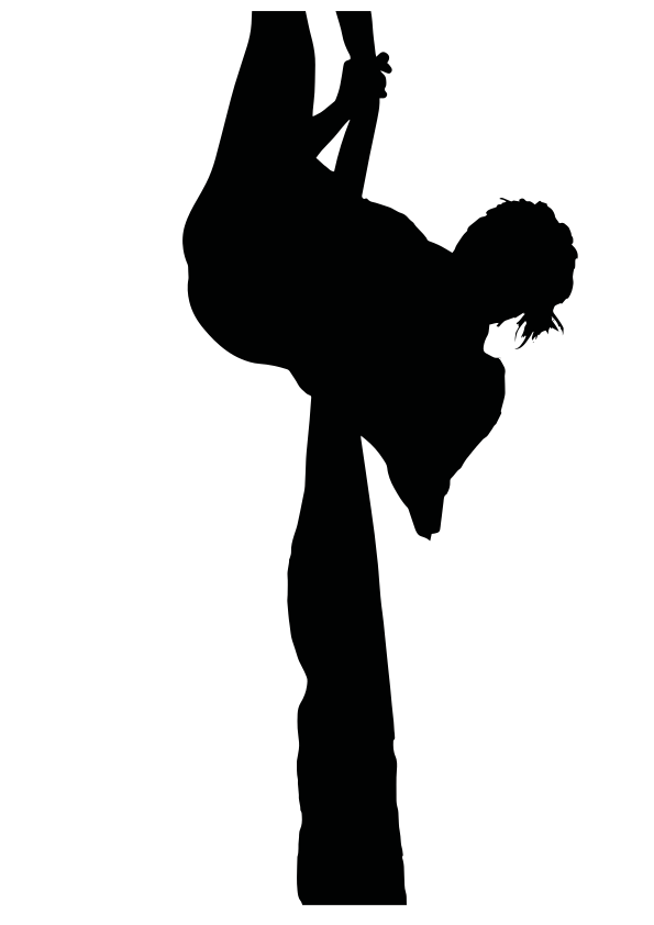 This features a silhouette of a person doing a handstand on a pole. The figure is in black and white, giving it an artistic appearance. The person's body is positioned at the top of the pole, showcasing their strength and balance. This unique scene captures the essence of street art or art de rue, as it is displayed against a plain background.