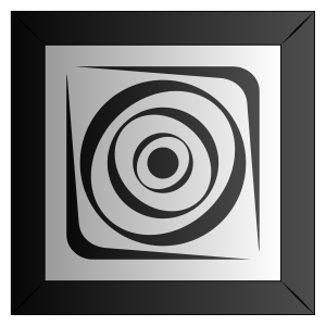 This features a black and white square with a large circle in the center. The circle is surrounded by smaller circles, creating an interesting pattern that fills most of the square. The overall design gives off a modern and abstract vibe. This unique pattern could be used for various purposes such as wall art or decorative items.