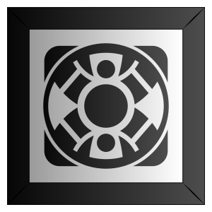 This features a black and white circle with an intricate design. Inside the circle, there is a smaller circle that has a person inside it. This design resembles a compass or a clock face. The overall appearance of the image gives off a vintage feel, making it suitable for various purposes such as artwork or decoration.