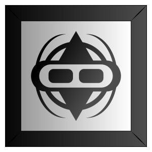This features a black and white logo with a circle in the center. Inside the circle, there is an emblem that resembles a pair of glasses or goggles. This design gives off a futuristic vibe, making it suitable for various applications such as technology, fashion, or even video games. The simplicity of the design and its bold colors make it easily recognizable and versatile in different contexts.