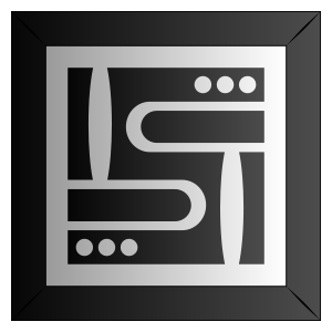 This features a black and white square with an abstract design. Inside the square, there is a large letter "S" that stands out against the background. The overall composition of the image gives it a modern and minimalist appearance.