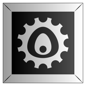 This features a square-shaped tile with an abstract design, which includes a gear and a circle. The gear is prominently displayed in the center of the tile, while the circle surrounds it on all sides. The overall appearance of the tile gives off a modern and sleek vibe.
