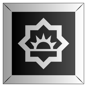 This features a black and white design with an abstract sunrise theme. The sun is depicted in the center of the design, surrounded by a circle that resembles a tile or a frame. This unique design element adds visual interest to the overall composition. The black background provides a striking contrast against the white sun, making it stand out even more prominently within the image.