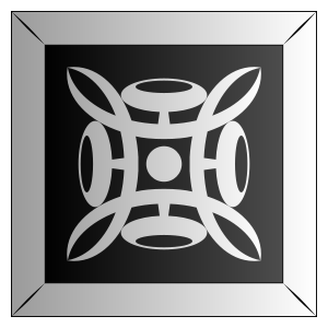This features a black and white design of an abstract flower. It is a square-shaped tile with a silver outline, giving it a unique appearance. The design appears to be made up of interconnected circles or dots, creating a visually appealing pattern. The overall effect is that of a modern art piece, which can be used as a decorative element in various settings such as homes, offices, or public spaces.
