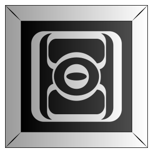 This features a square-shaped tile with a silver outline and an abstract design. It has a black background, giving it a sleek and modern appearance. The tile is likely made of metal or another material that can be used for decorative purposes in various settings such as homes, offices, or public spaces. Its unique design makes it stand out from more traditional tiles and adds a touch of sophistication to any room where it is installed.