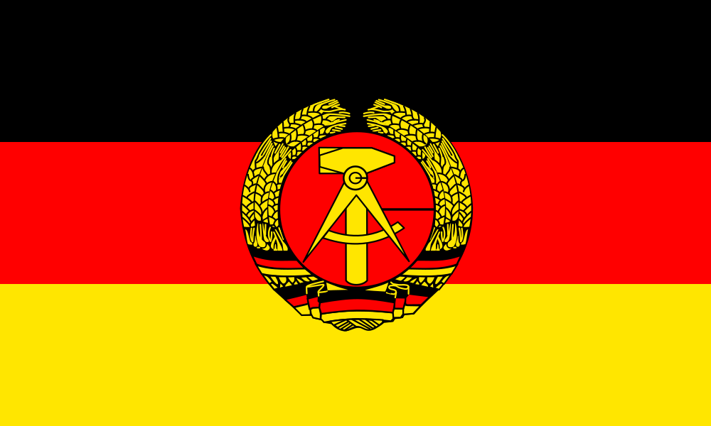 This features a flag with three colors, black, red and yellow. It is the flag of Germany, which has a hammer and divider on it. This symbol represents the country's history and its commitment to socialism. The flag is displayed prominently in the image, showcasing its bold design and striking colors.