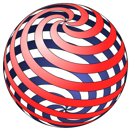 This features a large, colorful ball with red and blue stripes. The stripes are arranged in a spiral pattern, both at the top and bottom of the ball. The colors create an eye-catching design that makes the ball stand out against its background. This unique and vibrant object could be used as a decorative piece or even as a playful toy for children.