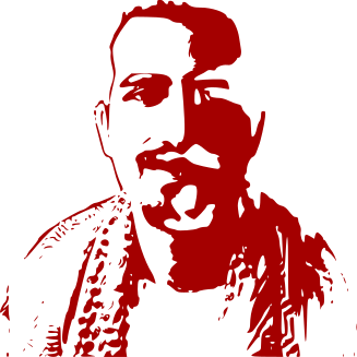 This is a red and white illustration of a man with a beard. He appears to be looking straight ahead, possibly at the camera or into the distance. The man's facial hair gives him a distinctive look, making him stand out in the picture. The red and white color scheme adds an interesting visual element to the image, drawing attention to the subject.