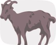 This features a brown goat standing in front of a white background. The goat is the main focus of the picture, taking up most of the frame. It appears to be an illustration or drawing rather than a photograph. The goat's horns are prominently displayed on its head, adding to its distinctive appearance.