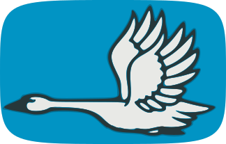 This features a bird, specifically a swan or duck, flying through the sky. It is depicted in a blue and white color scheme, with the bird's wings spread out as it soars above the ground. The bird appears to be flying towards the viewer, creating an impression of motion and depth in the image. This artistic representation of a swan or duck could potentially be used for various purposes such as decoration, advertisement, or even as part of a quiz award.
