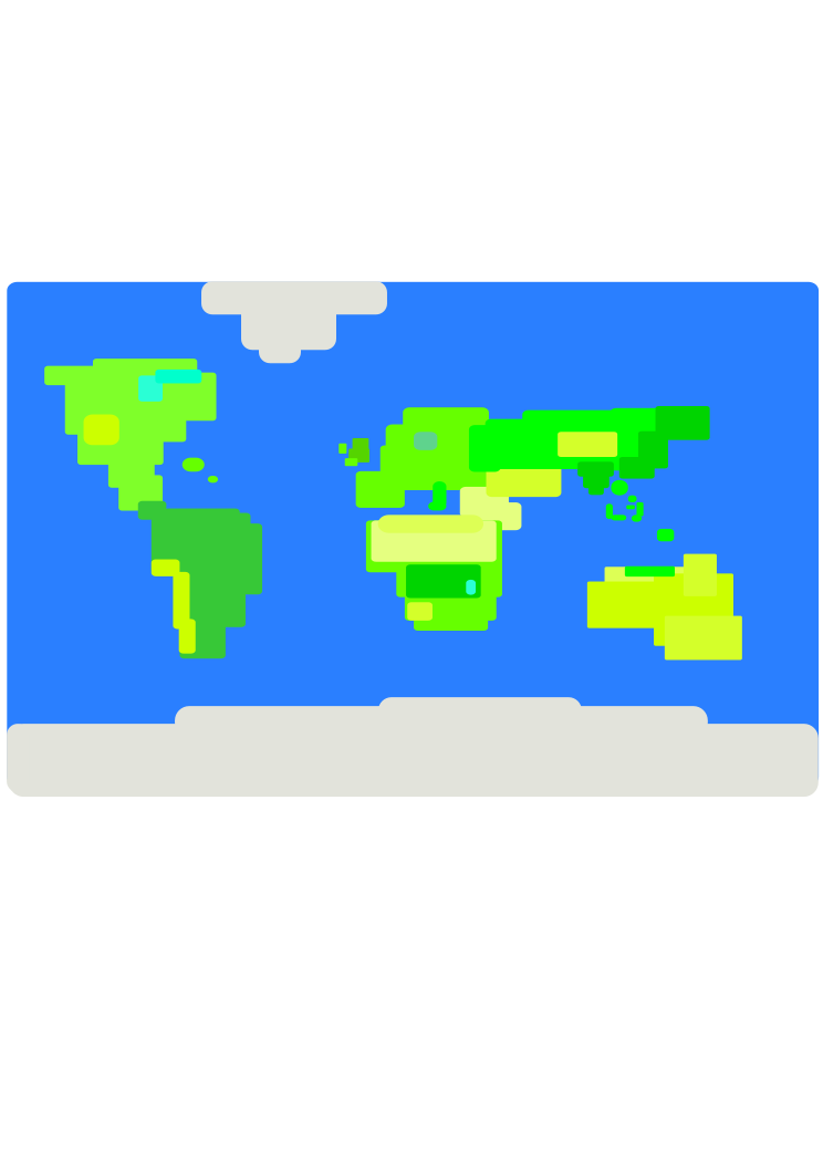 This is a cartoon-like drawing of the Earth, with various countries and continents represented by squares. The map is colorful and features a variety of shapes and sizes to represent different regions. It appears to be an artistic representation of our planet, rather than a traditional geographical map. The overall design gives it a playful and creative appearance, making it unique compared to standard maps.