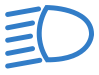 This features a blue and white icon that represents a car's low beam light. This icon is likely used to indicate the presence of such a feature in vehicles or related products, such as car accessories or automotive services. The icon consists of an outline of a car with a single headlight on, which signifies the low beam function. The blue and white color scheme adds a touch of modernity and sophistication to the design, making it visually appealing and easily recognizable.
