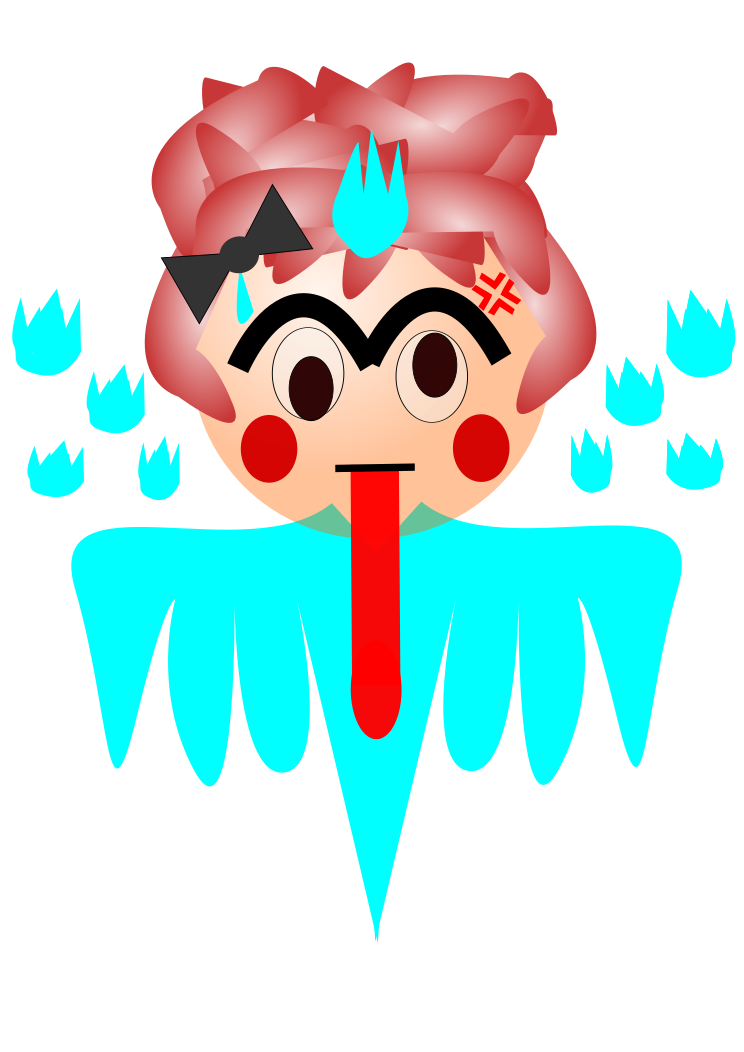 This features a cartoon character with an exaggerated facial expression, making it appear as if the character is yawning or has a long tongue. The character's eyes are wide open and its mouth is open, giving it a comical appearance. The character is wearing a necklace around its neck, adding to its unique look. The overall scene appears to be an artistic representation of a person with a playful and humorous twist.