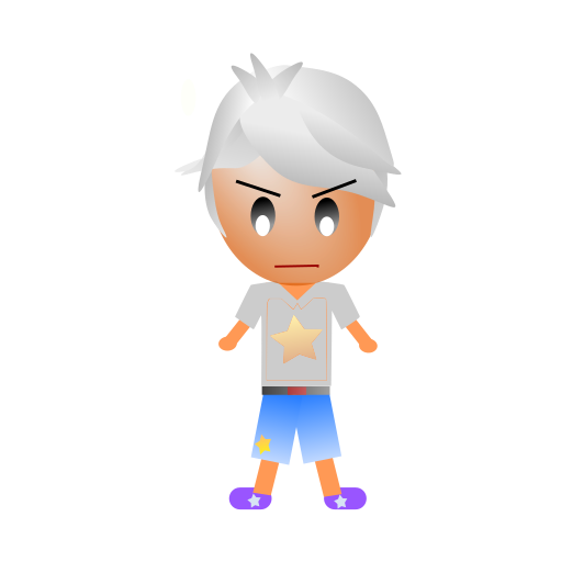 This features a cartoon character with a star on his shirt, standing in front of a white background. He appears to be wearing blue shorts and has a purple shoe. His expression is somewhat angry or discontent as he stares into the distance. This cartoon figure could potentially represent a superhero or an animated character from a popular franchise. The simplicity of the background allows the viewer's focus to remain on the main subject, which is the cartoon character himself.