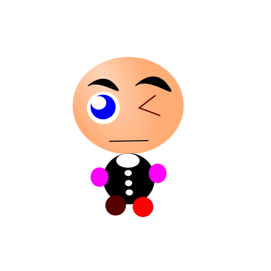 This features a cartoon character with a black and white suit, standing in the center of the frame. This character has a unique appearance, as it is wearing a tie that is pink on one side and red on the other. It appears to be making a funny face or expression, adding humor to the scene. The overall design of this cartoon figure gives off a playful vibe, likely intended for entertainment purposes.