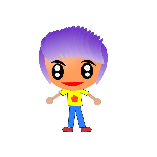 This features a cartoon character with purple hair and a yellow shirt. The character is standing in front of a white background, giving the impression that it's a flat design or an animated figure. The character appears to be smiling, adding a friendly and approachable vibe to the image. The overall composition creates a sense of fun and playfulness, making it suitable for various applications such as children's books, games, or other entertainment media.
