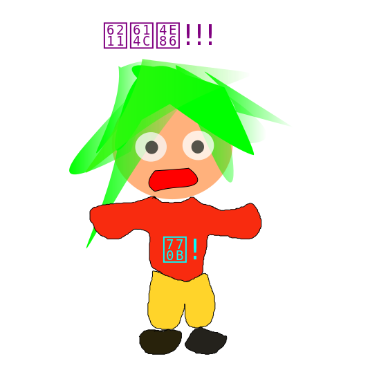This features a cartoon character with green hair, wearing a red shirt and yellow pants. The character appears to be surprised or upset as it is depicted with an exclamation mark above its head. The character's facial expression suggests that it might be reacting to something unexpected or unpleasant. The overall scene gives off a playful, animated vibe, likely intended for entertainment purposes.