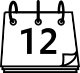 This features a calendar with the number twelve prominently displayed on it. The calendar is rectangular in shape and has black outlines surrounding the numbers, making it stand out against the background. It appears to be a simple yet effective way of keeping track of time and dates.