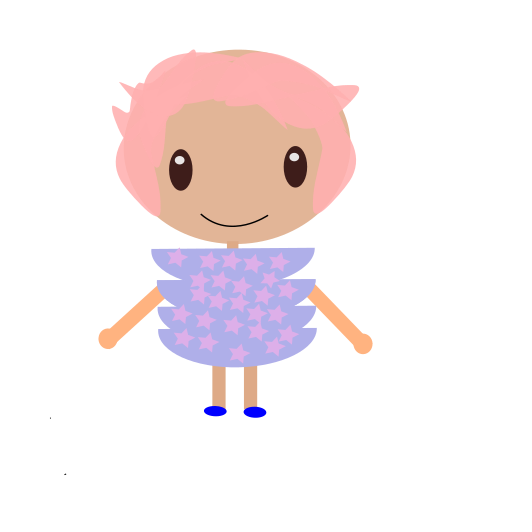 This features a cartoon character with pink hair and a blue dress. The character is standing in the center of the frame, posing for the camera. The character's outfit includes a blue top and a white skirt, giving it a cute and playful appearance. The overall scene has a whimsical and fun atmosphere, making it an appealing image for children or those who enjoy cartoons.