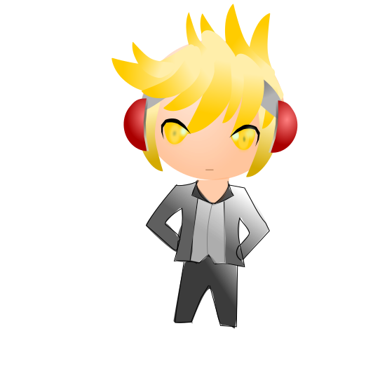 This features a cartoon character with yellow hair and large ears, wearing headphones. This character appears to be posing for the camera, possibly in a casual or relaxed manner. The character's outfit consists of a black jacket and a white shirt, giving it a stylish appearance. The overall scene is colorful and eye-catching, with the cartoon character being the main focus of the image.