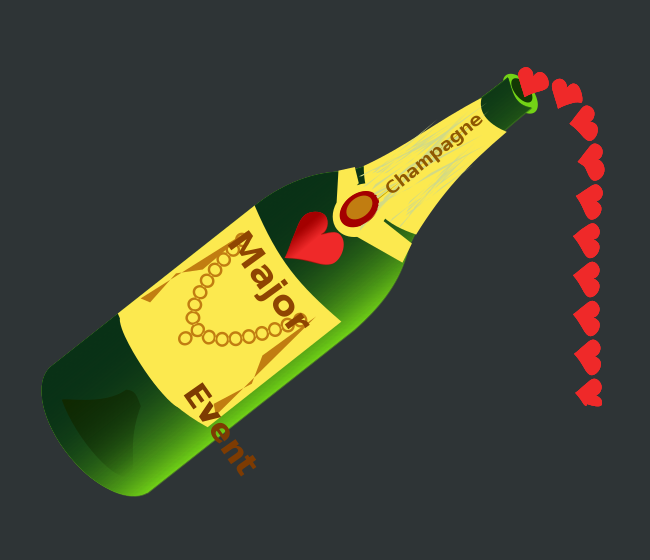 This features a bottle of champagne with hearts pouring out, creating an elegant and festive atmosphere. The bottle is prominently displayed in the center of the scene, surrounded by several hearts that are scattered throughout the image. These hearts come in various sizes and positions, adding depth and interest to the overall composition. The combination of the champagne bottle and hearts creates a visually appealing and celebratory scene, perfect for special occasions or gatherings.