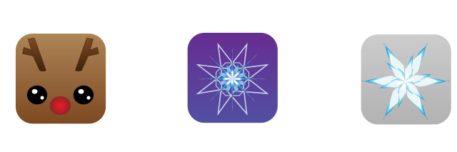 This features four different icons, each with a unique design. The first icon is a reindeer, which has a brown color and is located on the left side of the screen. The second icon is a snowflake, featuring a white color and positioned in the middle of the screen. The third icon is a star, with a blue color and placed towards the right side of the screen. Lastly, there is a fourth icon that has a purple color and is located on the far right side of the screen. These icons are arranged next to each other, creating an appealing visual display.