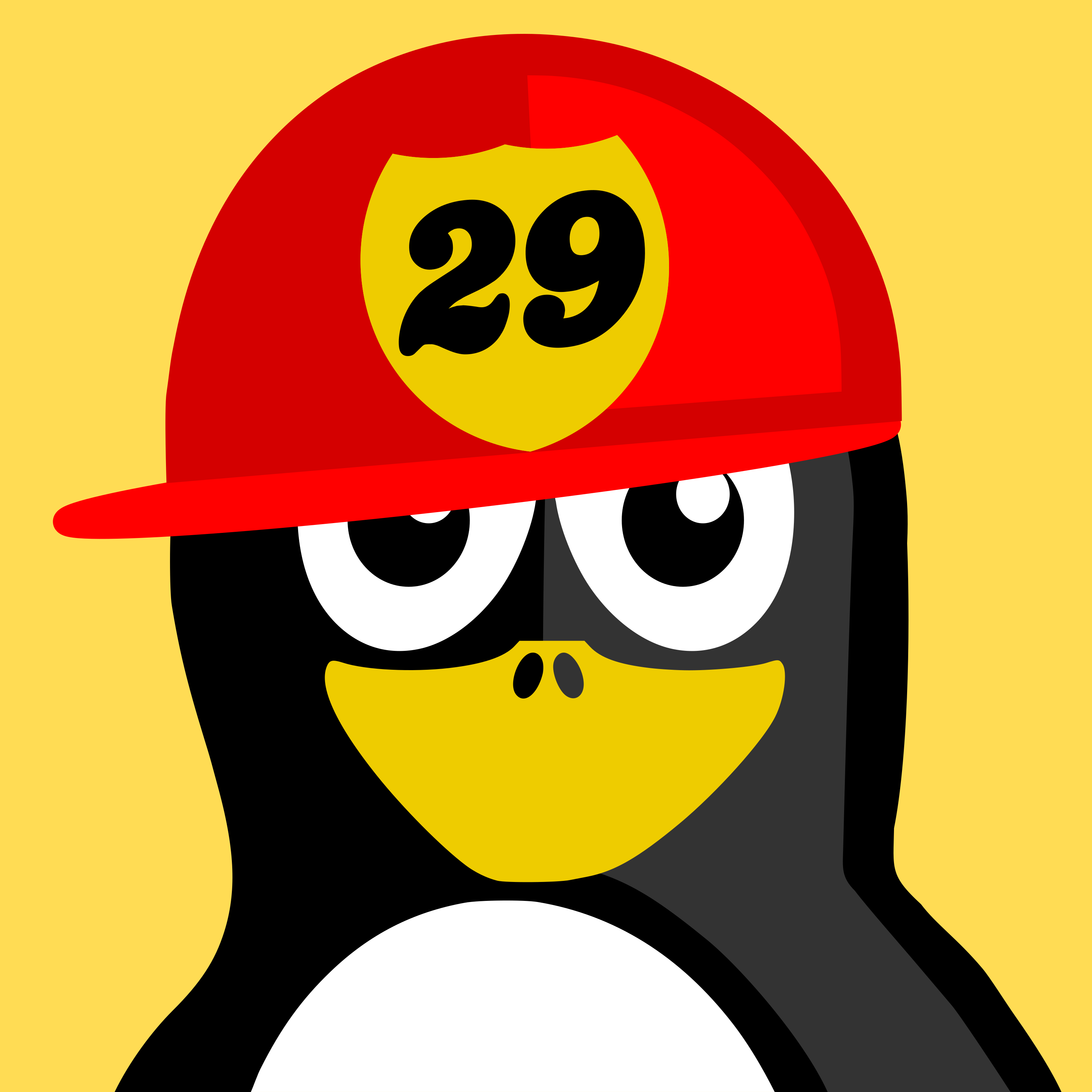 This features a cute cartoon penguin wearing a red helmet with the number 29 on it. The penguin is also wearing a hat, which adds to its adorable appearance. It appears to be looking at something or someone, possibly posing for a picture. The combination of the red helmet and hat gives the penguin a playful and fun vibe.