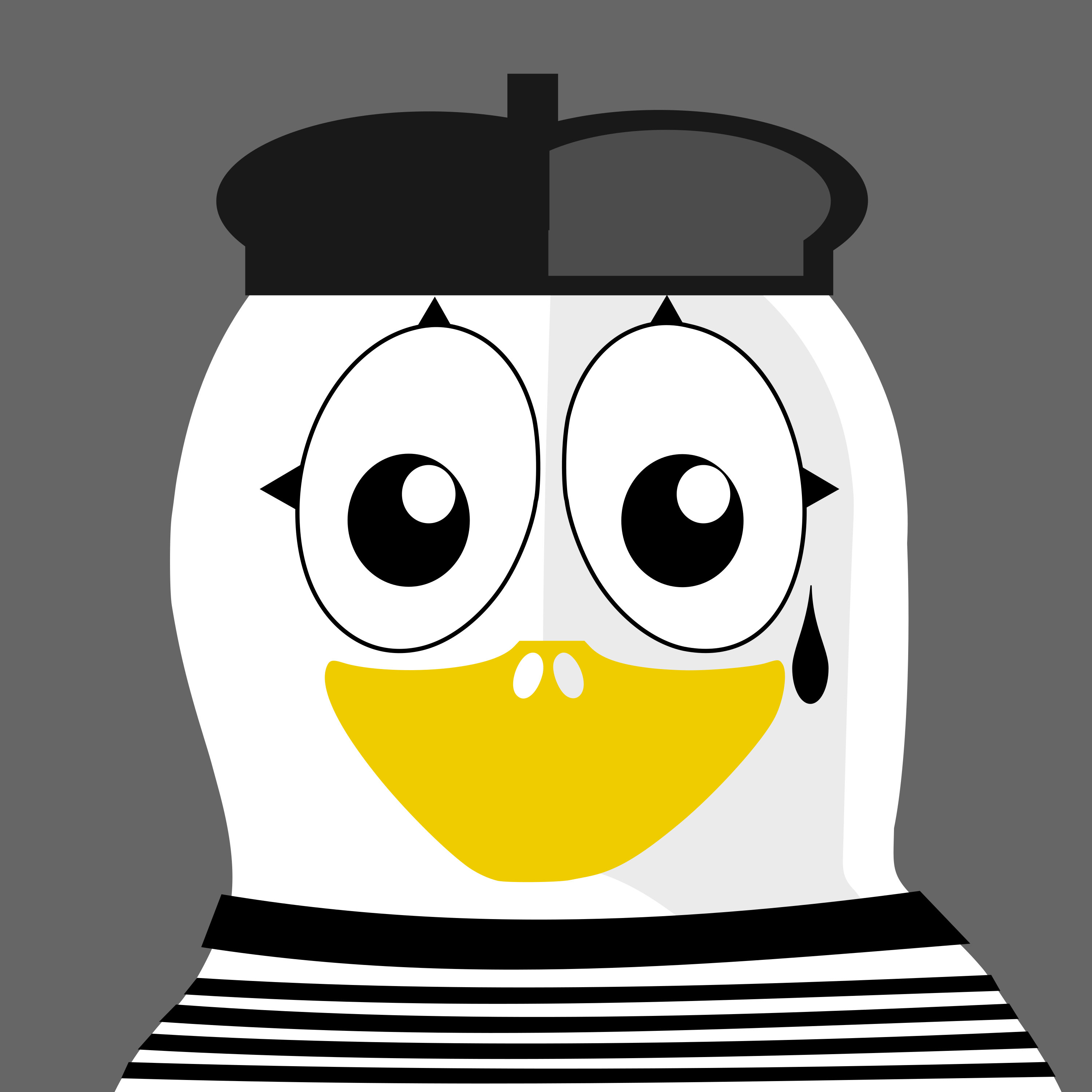 This features a cute penguin with a black tear under its eye, wearing a white and black striped shirt. It has a yellow beak and is smiling at the camera. The penguin's eyes are large and round, giving it an expressive appearance. The overall design of the penguin gives off a playful vibe, making it an appealing character for children or those who enjoy cute animal illustrations.