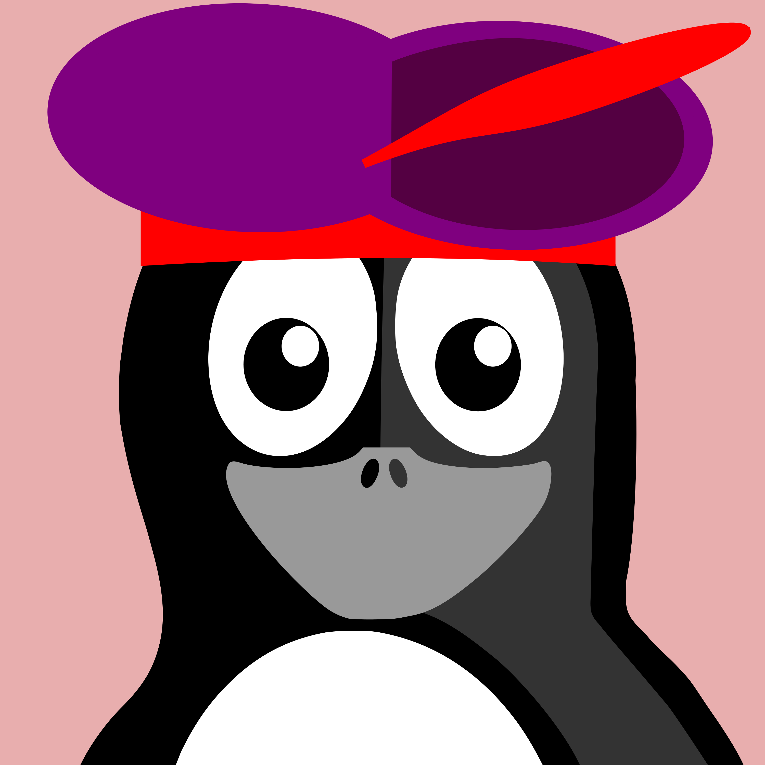 This features a cartoon penguin wearing a purple and red hat. The penguin has big eyes, giving it an expressive look. It appears to be the main focus of the scene, with no other objects or characters visible in the background. The penguin's hat is positioned on top of its head, adding a playful touch to the character design.