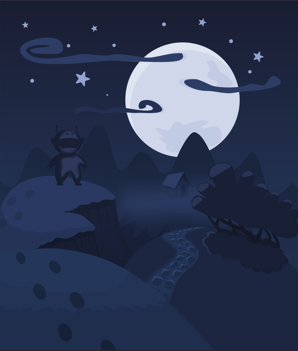 Tags: monster, bush, cloud, hill, moon, night, road, star