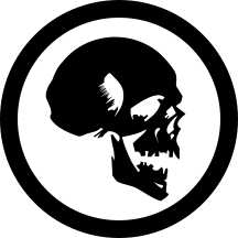 This features a black and white illustration of a skull, which is the central focus of the design. The skull is depicted in silhouette form, with its details emphasized through shading rather than color. It appears to be set against a circular background, giving it an artistic and visually appealing appearance. This skull symbol can evoke various emotions or associations depending on the viewer's perspective, but it is undoubtedly a striking and memorable image.