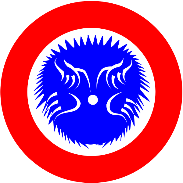 This features a red and blue circle with an animal design on it. This unique creature has the appearance of a spiny ant-eater or echidna, which is native to Australia. The design appears to be inspired by both the Australian air force's flying kangaroo logo and the Echidna or spiny ant-eater. The circle itself is red with blue accents, creating an eye-catching contrast between the two colors. This creative fusion of elements showcases a distinctive design that combines the iconic Australian symbol with the native animal's features.