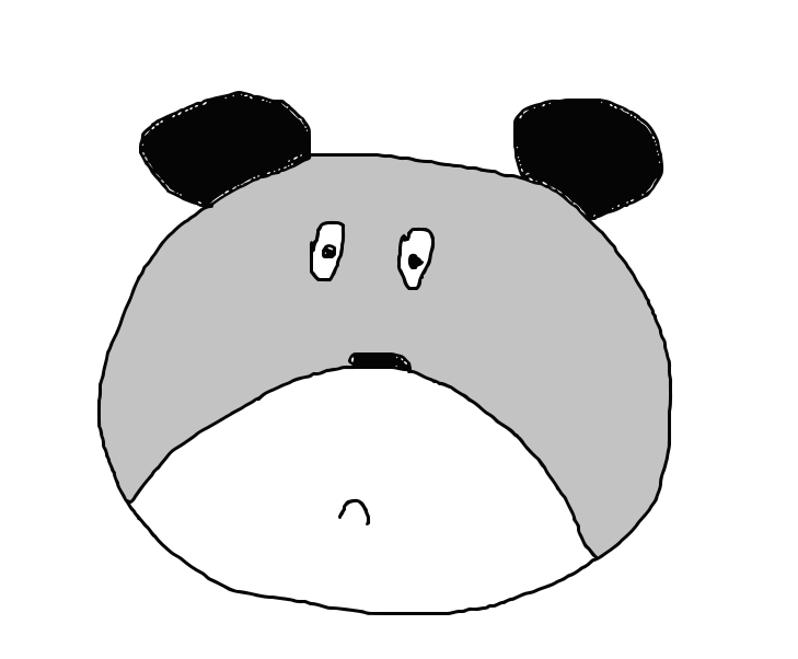 This features a cartoon drawing of a bear with a sad expression. It has black ears and is colored half white and half gray, giving it an interesting appearance. The bear's face appears to be frowning, adding to its somber demeanor. This unique design makes the bear stand out as a creative and playful character.