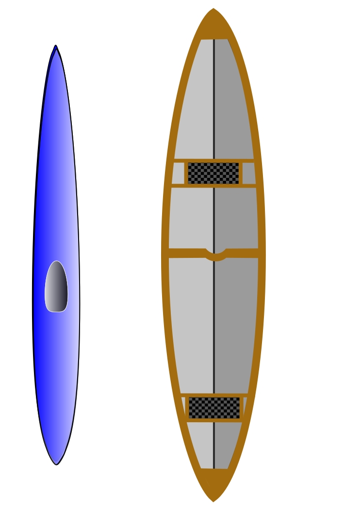 This features a side-by-side comparison of two different types of boats, a kayak and a canoe. Both are positioned vertically on the screen, with the kayak being slightly larger than the canoe. The kayak is blue in color, while the canoe has a brown hue. The canoe appears to have a more open design compared to the enclosed space of the kayak. This image provides an interesting perspective for viewers who may be interested in boating or water sports activities.