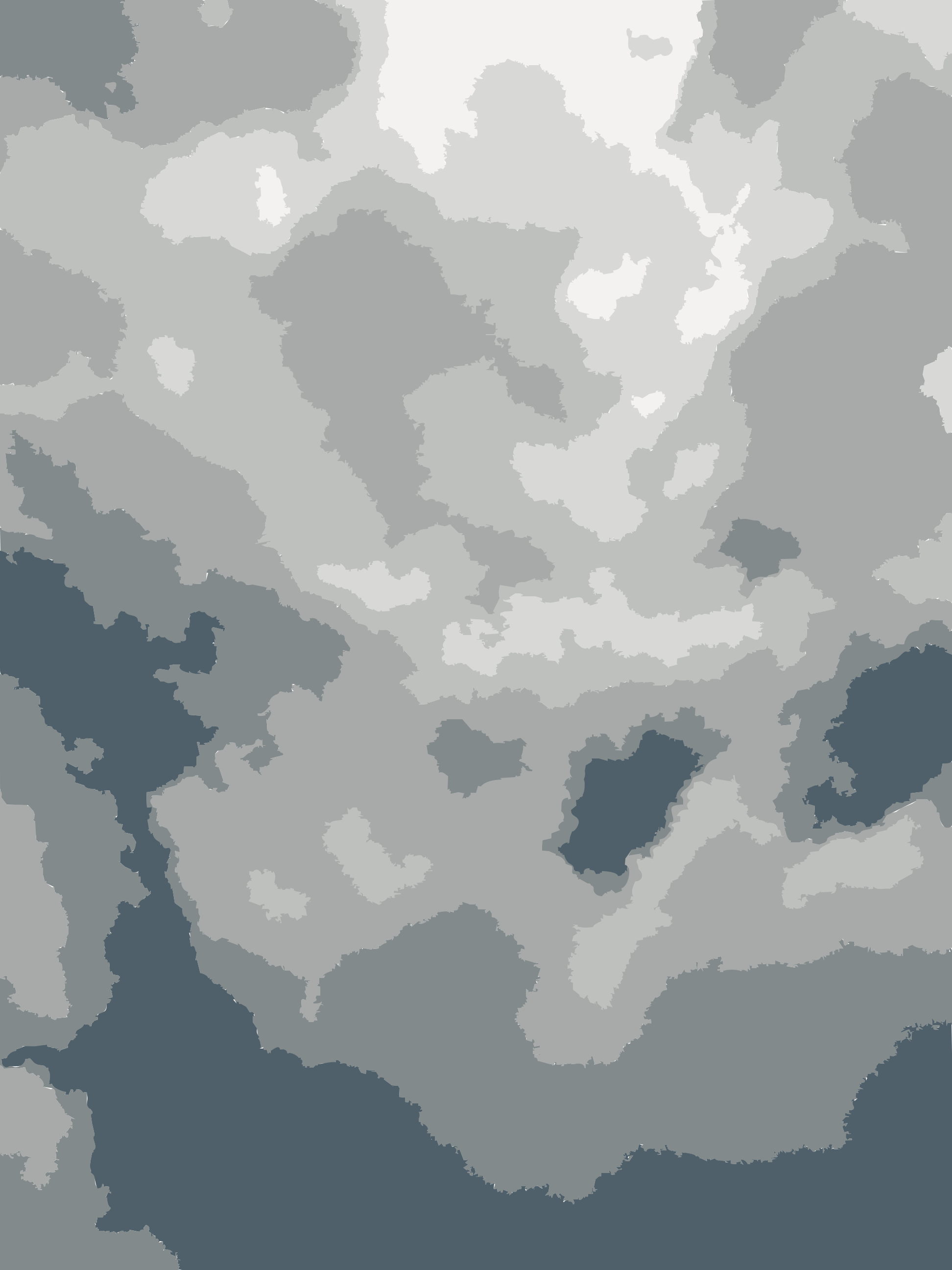 This features a cloudy sky with various shapes and sizes of clouds. Some of the clouds are large, covering most of the sky, while others are smaller and scattered throughout the scene. The overall atmosphere appears to be somewhat gloomy or overcast, but the intricate patterns created by these clouds make it visually interesting. The image captures a moment in time where nature's beauty is showcased through its cloud formations.