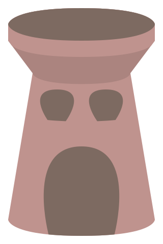 This features a brown and pink ceramic vase with two windows. It has an unusual design, giving it the appearance of a face or a smiling expression. The vase is placed on a table, drawing attention to its unique and playful appearance.