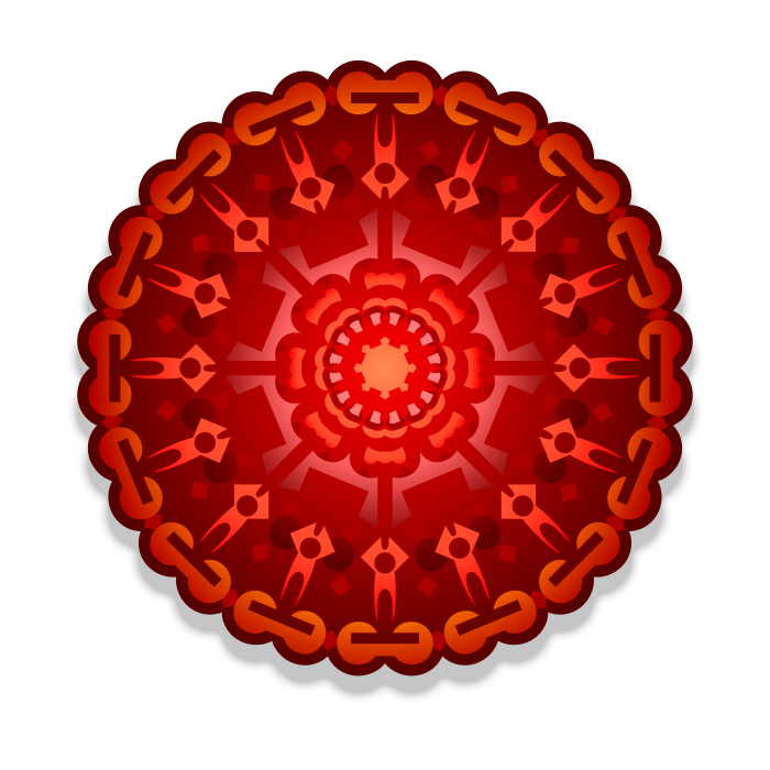 This features a red circle with an intricate design inside of it. In the center, there is a flower that adds to the overall visual appeal of the piece. The circle itself has a chain pattern surrounding it, giving it a unique and artistic appearance. This design could be used for various purposes such as decoration or even as a sticker on items like laptops or notebooks.