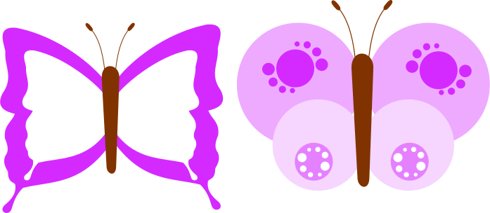 This features two different butterflies, one pink and the other purple. They are placed side by side on a white background, creating an interesting contrast between their colors. Each butterfly has distinctive markings, adding to their unique appearance. The pink butterfly is positioned slightly higher than the purple butterfly, giving them both a sense of depth and dimension in the image.
