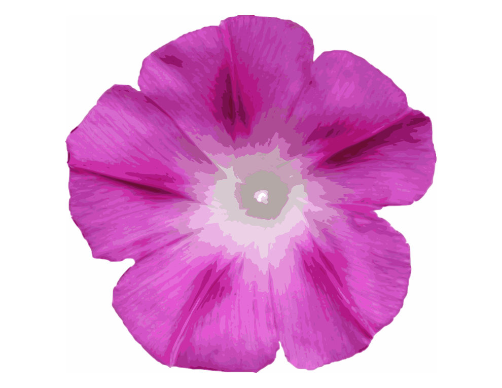 This features a close-up of a pink flower with five petals. In the center of the flower, there is a white circle that adds an interesting contrast to the vibrant pink color of the rest of the flower. The petals are slightly overlapping each other, creating a visually appealing and detailed view of this beautiful blossom.