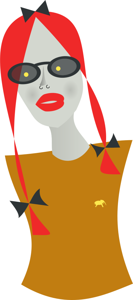 This features a woman with red hair and glasses, wearing a yellow shirt. She has a unique appearance as she is described to have yellow eyes. In addition to her eye color, the woman also has a distinctive feature of having pins stuck in her neck. This creates an interesting visual effect that adds character to the image. The overall scene appears to be a creative and artistic representation of the woman with these unconventional characteristics.