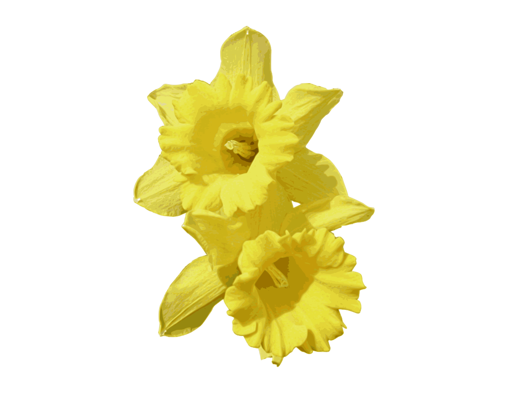 This features a close-up of two yellow flowers, possibly daffodils or narcissus. They are positioned in the center of the frame and appear to be cut out from their background. The flowers have a vibrant color and seem to be the main focus of the picture. The overall composition creates an artistic and visually appealing scene.