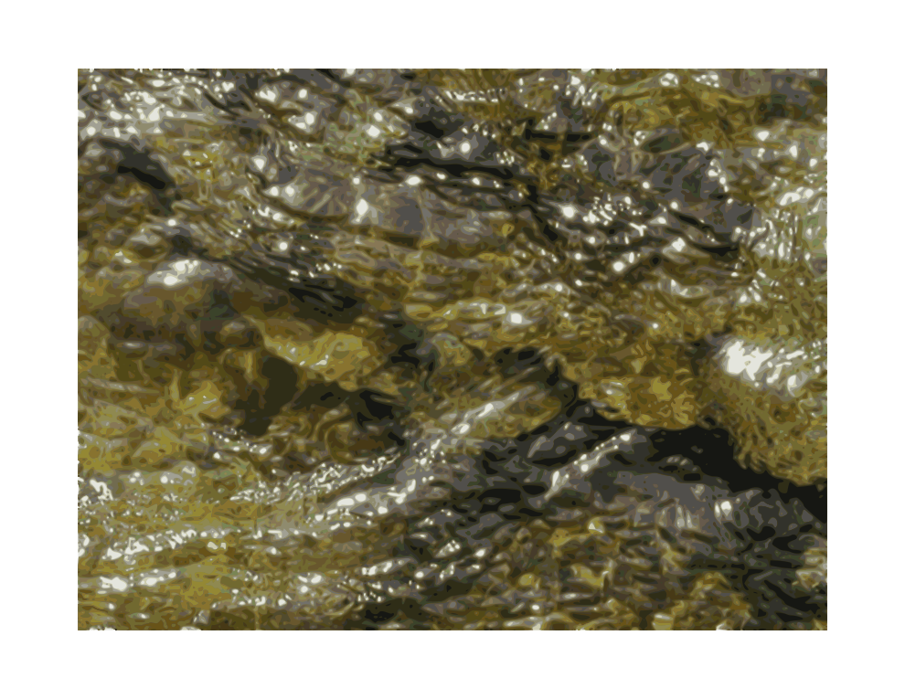This features a close-up view of rippling, clear water flowing over mossy rocks. The water appears to be slightly murky and has a golden hue, giving it an interesting appearance. The rocks are visible beneath the water's surface, creating a unique visual effect. This scene captures the beauty of nature and its intricate details, making it an appealing image for viewers.
