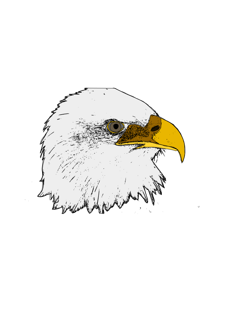 This features a large, detailed drawing of an eagle's head. The eagle has its beak open and appears to be looking directly at the viewer. The drawing is in black and white, giving it a classic and timeless appearance. The eagle's head takes up most of the frame, emphasizing its size and prominence in the image.