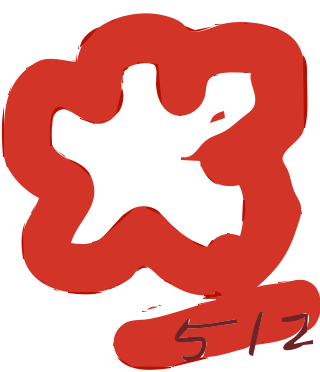 This features a red star with a number 512 written below it. The star is hand drawn and has a white outline, giving it a unique appearance. The combination of the red color and the white outline creates an interesting contrast in the drawing.