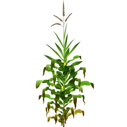 This features a single, tall corn stalk with green leaves and yellow tips. It is standing upright in the foreground of the picture, drawing attention to its unique appearance. The corn plant appears to be growing in an open field or garden setting, providing a sense of space and natural surroundings. This close-up view of the corn stalk highlights its intricate details and textures, making it an interesting focal point for the viewer.